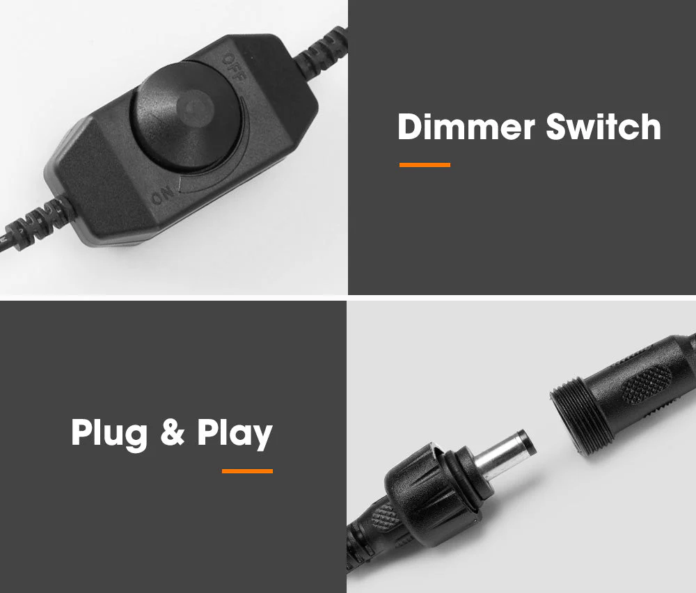 - Dimmer Switch: You can change the light’s intensity with the push of a button thanks to the straightforward rotary dial.
